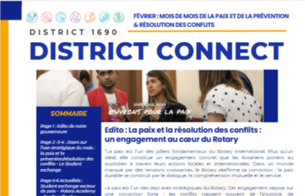 Le mois de février, mois qui célèbre la création du Rotary -le 23- a été choisi comme celui de la paix et de la prévention/résolution des conflits. Est-ce un signe ? La Paix constitue la finalit...