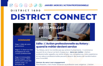 Chères amies, chers amis, L’action professionnelle, thème choisi par le Rotary pour débuter chaque nouvelle année, constitue le fondement du Rotary. Paul Harris pour lequel « Chicago était al...